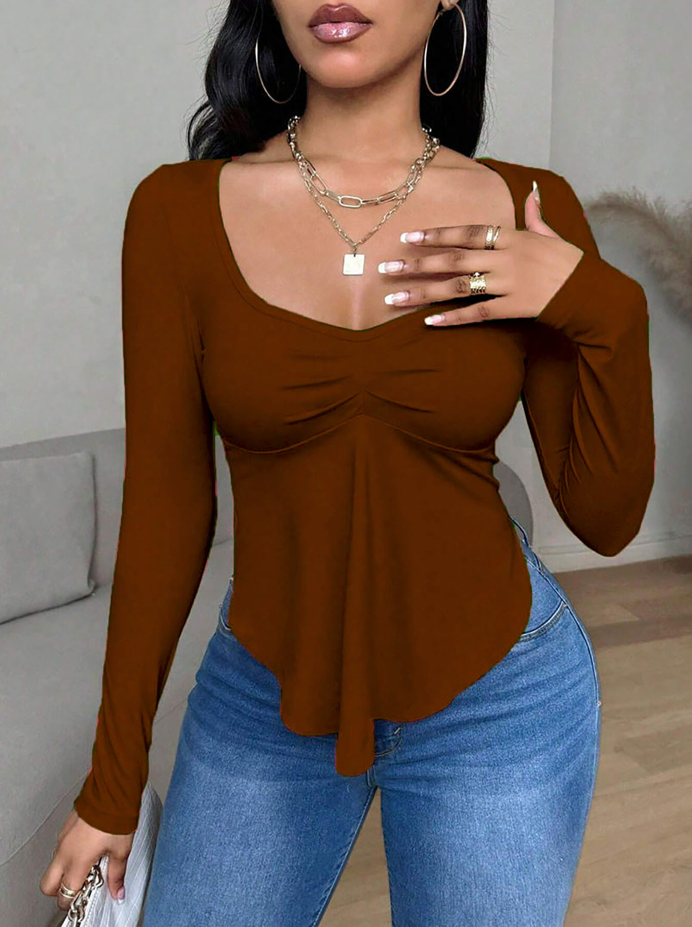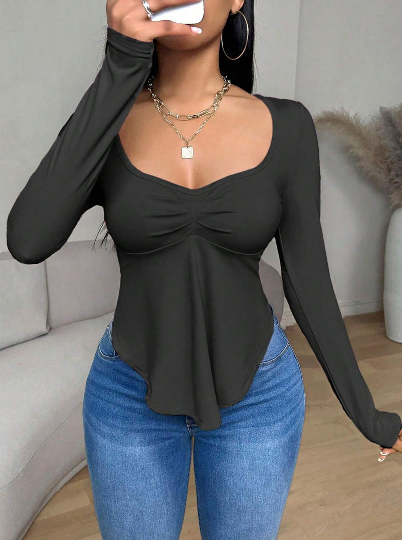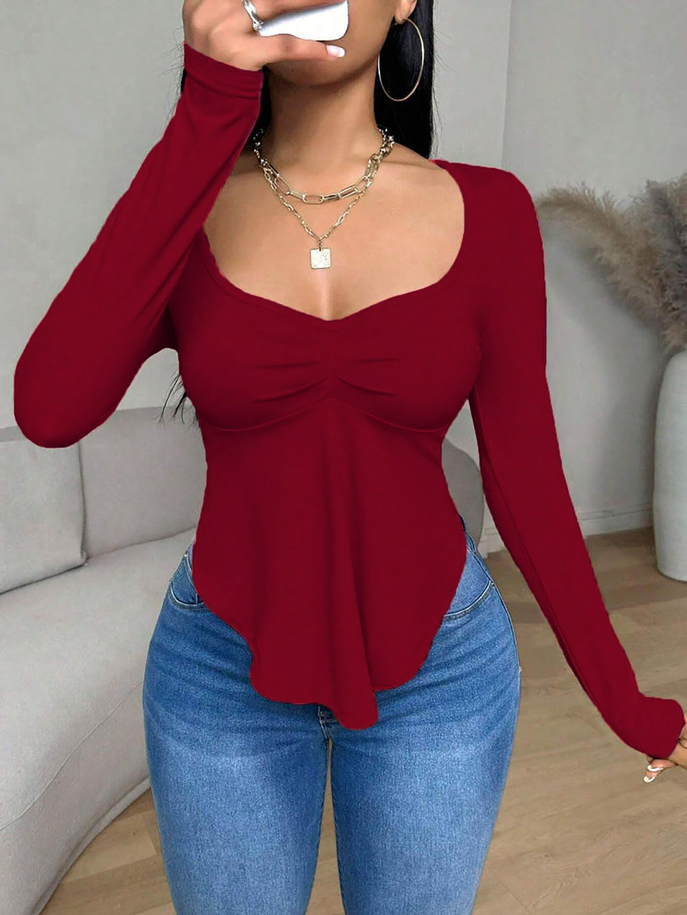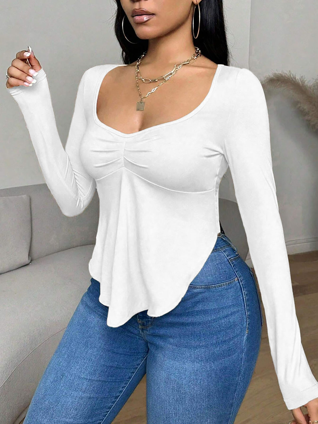 Popular Elements: Solid Color, Casual, Versatile, Pleats, Slim Fit, Irregular